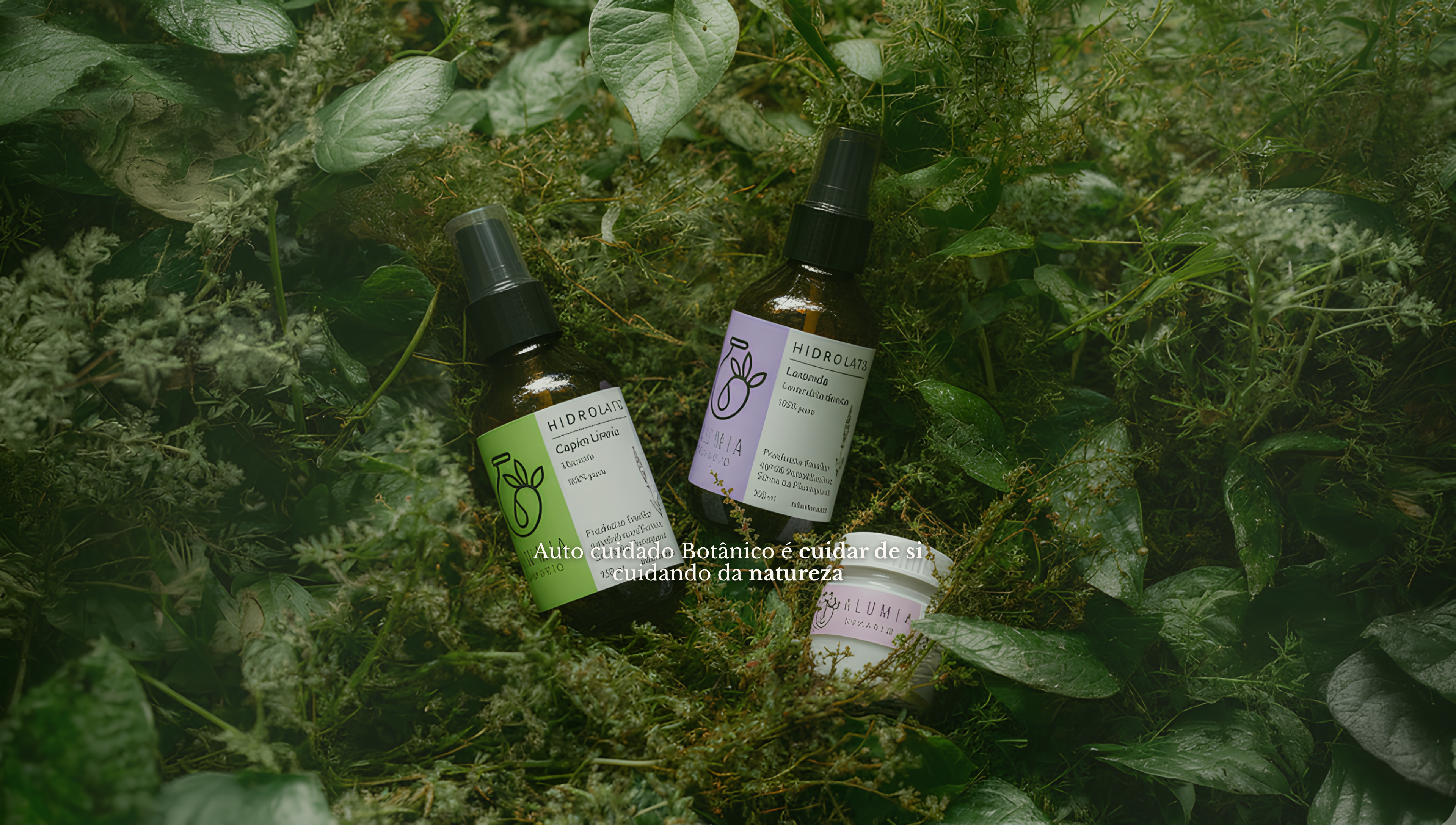 O hidrolato, também chamado de água floral, nasce no processo de destilação das plantas aromáticas. É uma água multifuncional e 100% natural, rica em bioativos que carrega em si uma pequena quantidade de óleo essencial. Suave e ao mesmo tempo potente, pode ser usada diretamente na pele, cabelos e ambientes. Cada um carrega sua medicina, dependendo da planta pode ser tônico, clareador de manchas, estimulante, calmante, anitséptico. Te convido a conhecer nossa linha completa.